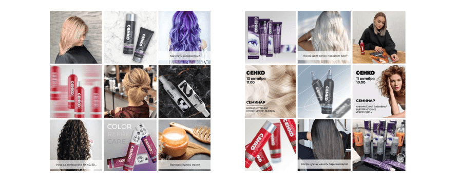 Акцент в визуале делается на идеальные волосы моделей и продукцию бренда.
