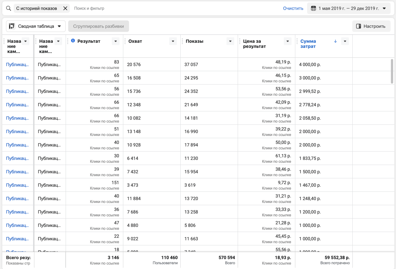 За время работы запустили 103 публикации на промотирование, т.е. каждый второй пост. Общие результаты на скриншоте выше.