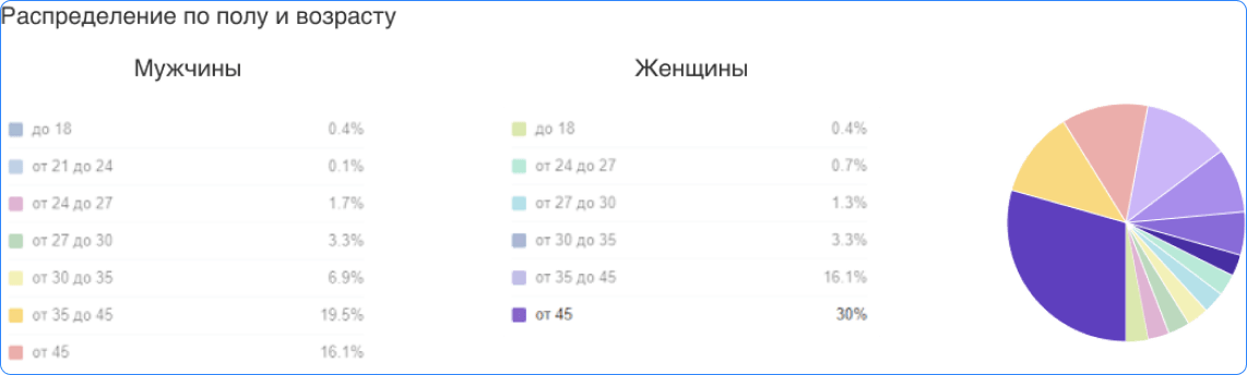 Обычно поиском квартиры занимаются женщины. Зная это главное гендерное преимущество, мы определили целевую аудиторию: преимущественно это женщины от 35–45 лет (46,1%). Остальная аудитория — это мужчины от 35–45 лет (35,6%). Также собираем посетителей сайта, аудиторию с положительной реакцией на рекламные объявления и запускаем ретаргетинг.
