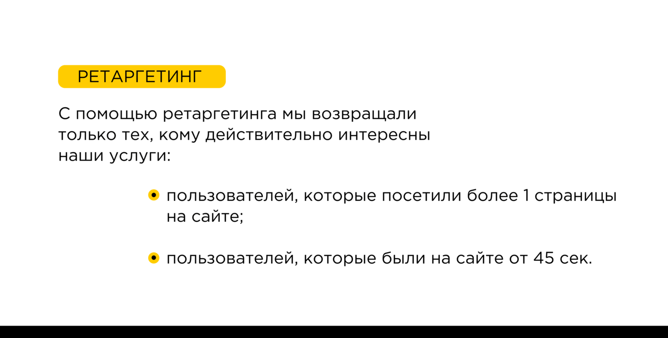 До нас клиент не сотрудничал с рекламными агентствами и не запускал рекламу самостоятельно. В основном заявки приходили по “сарафанному радио”, а с сайта не было.