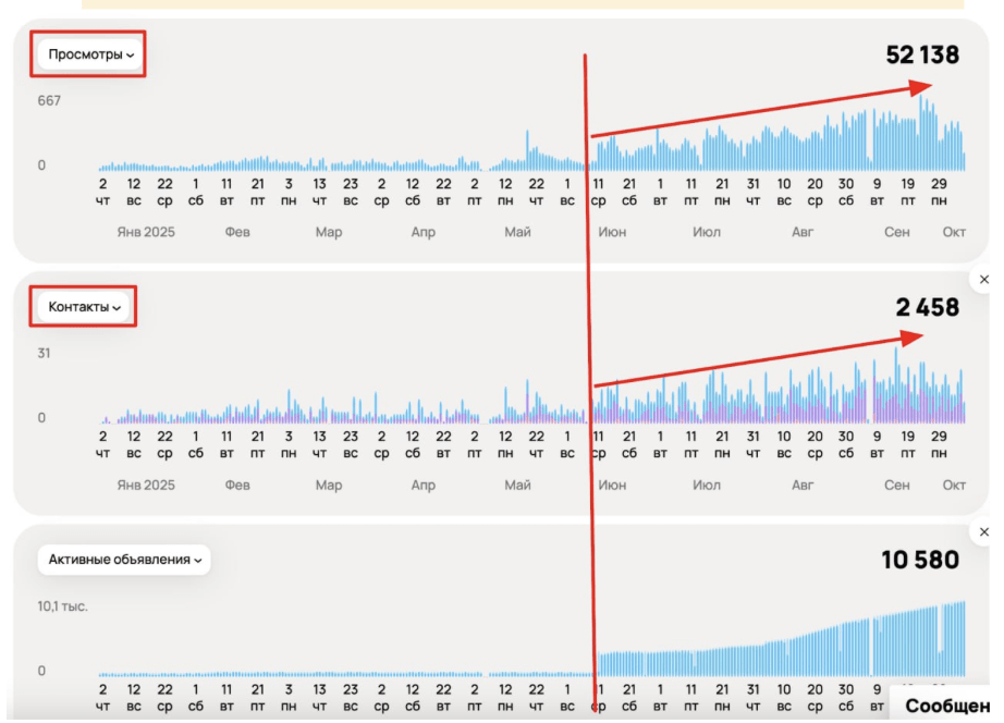 При этом важно отметить: бизнес получил рост не только по заявкам, но и по доверию клиентов. Когда объявления выглядят проработанными, а ассортимент представлен широко, это сразу повышает уровень доверия и увеличивает шанс повторных заказов. Дополнительно, бизнес получил более точное понимание потребностей клиентов, что позволяет предлагать именно востребованные товары и снижать риски нераспроданных остатков.