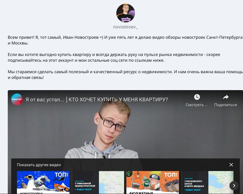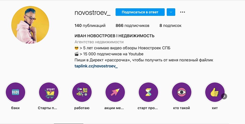 Иван Новостроев - блогер, который публикует обзоры на жилые комплексы и другие ролики про строящееся жилье Санкт-Петербурга. Он обратился к нам, чтобы мы с нуля создали для него аккаунт в Инстаграмм и помогли ему выстроить диалог с теми, кто уже смотрит его ролики или хочет изучить рынок недвижимости.
