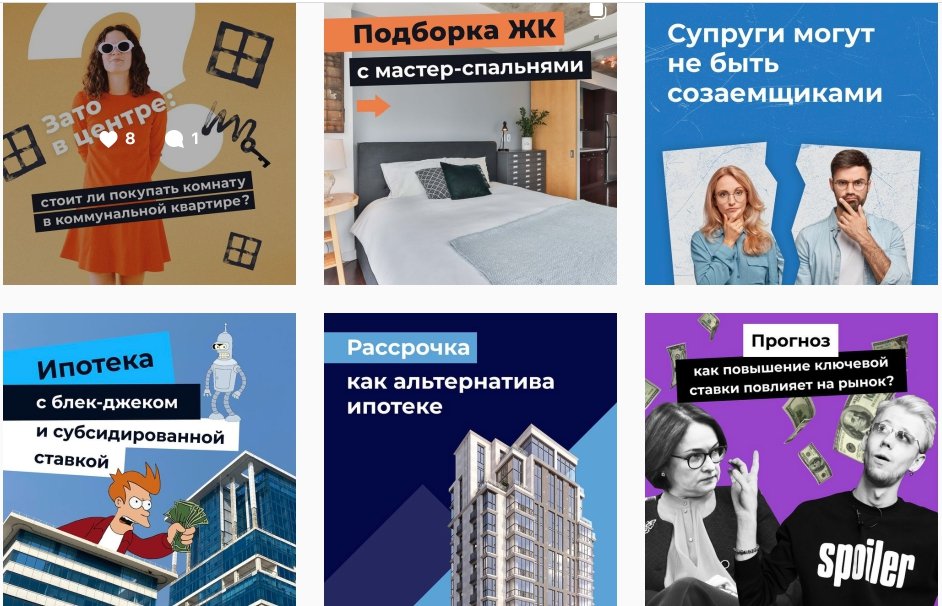 Затем мы создали ярки визуал для страницы и начали публиковать профессиональный контент в форме простых, но информативных постов с примерами, сравнениями, обзорами районов, инсайдами рынка.