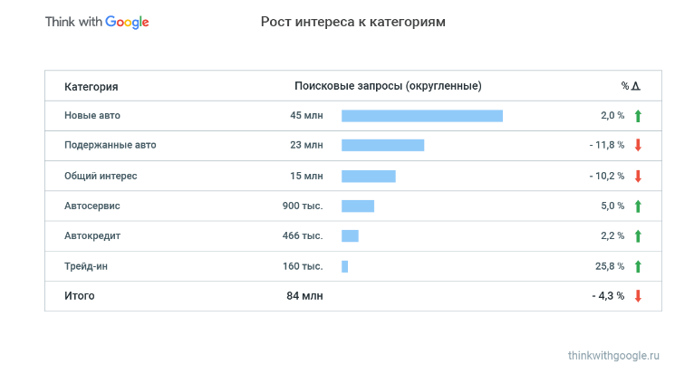 По данным Google, в первом квартале 2019 года россияне стали больше интересоваться услугой трейд-ин и автосервисами, значительно меньше — подержанными автомобилями.
