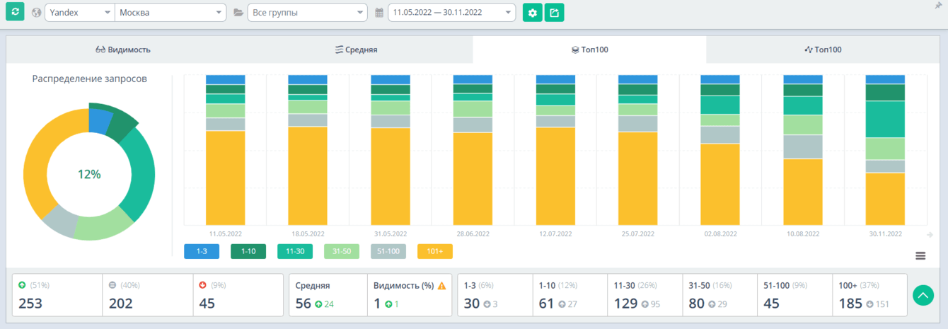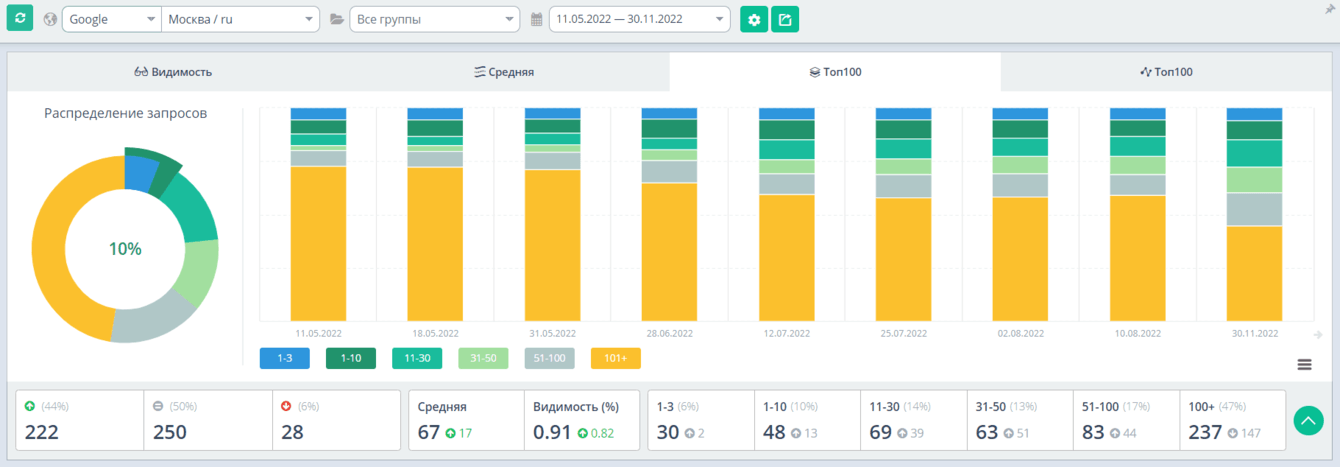 - Все существующие и созданные продвигаемые страницы были оптимизированы под требования поисковых систем (прописаны мета данные, оптимизирован контент, написаны SEO-тексты). И первые результаты не заставили себя долго ждать.
