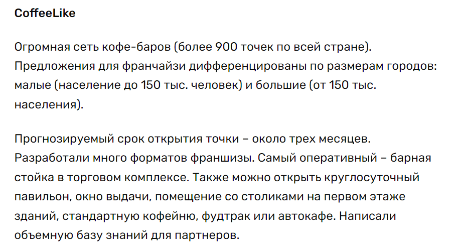 • Coffee Like развивается за счет покупки сетей в регионах с большим количеством кофеен (от 40).