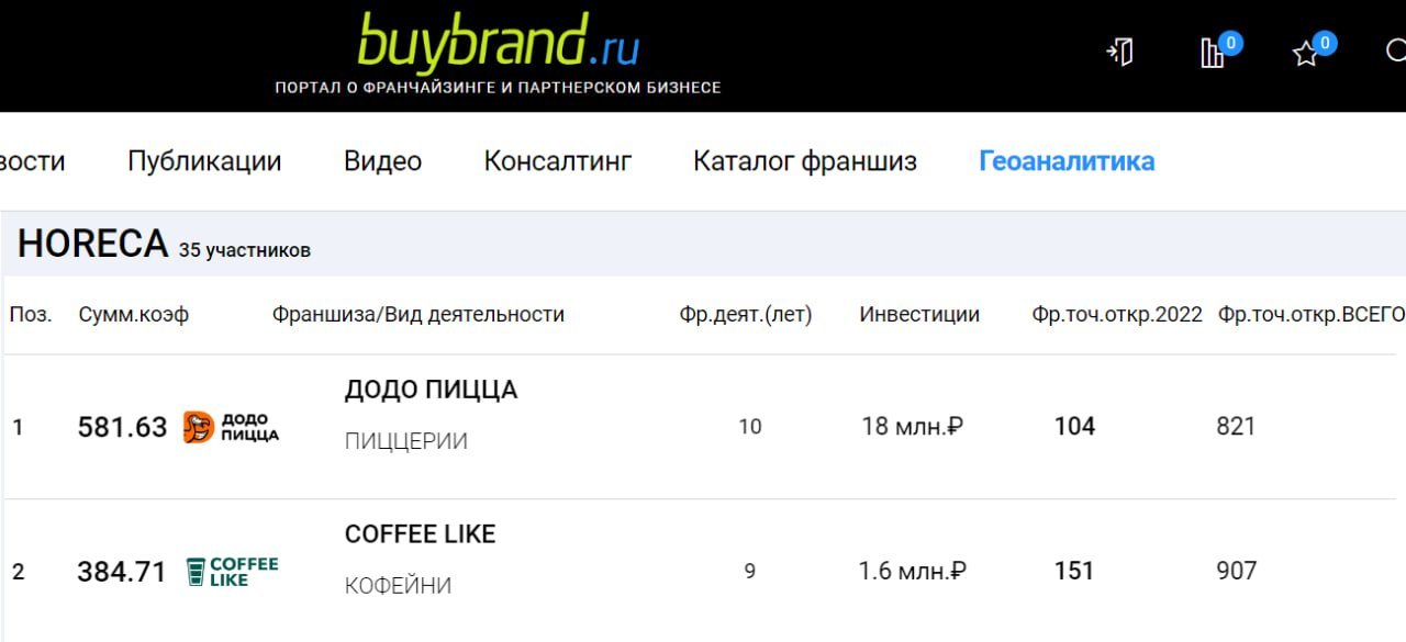 • Buy Brand и Коммерсантъ. Рейтинг российского рынка франшиз. Второе место среди всех франшиз в России в сегменте HoReCa, 8 по всей стране