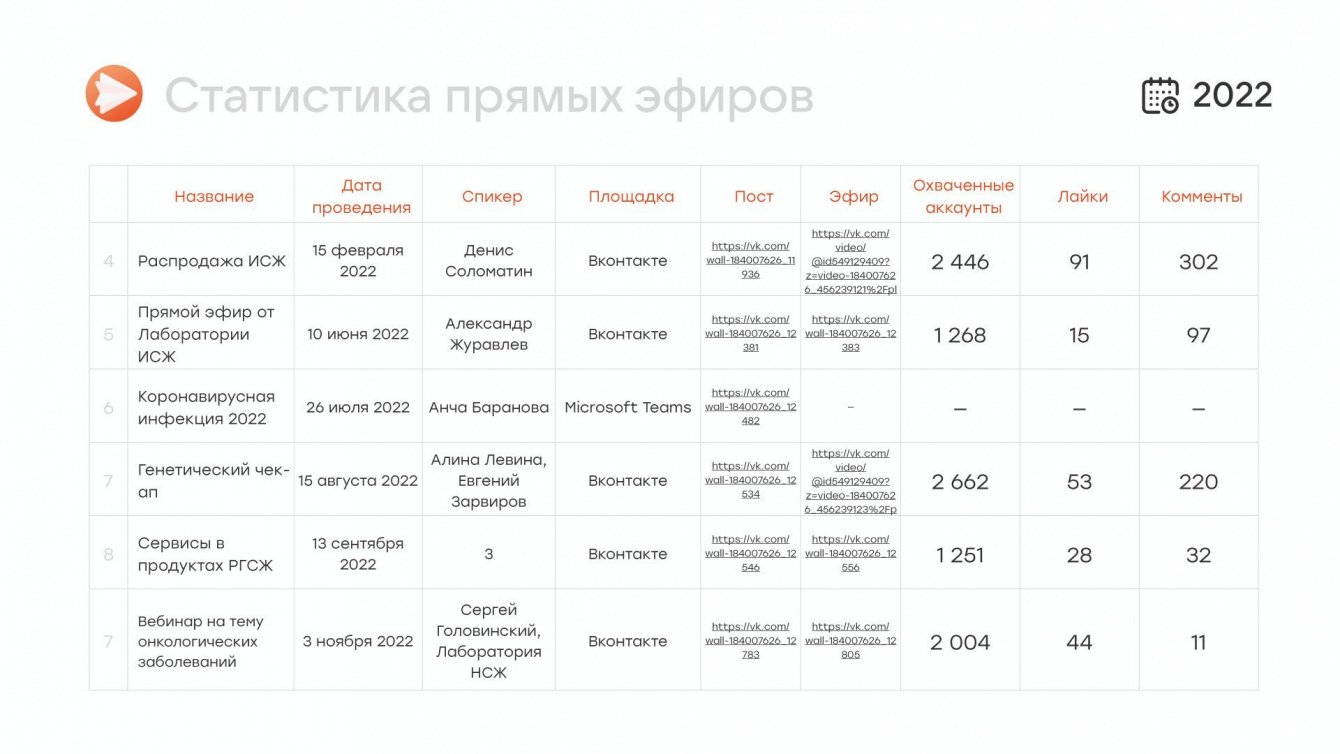 Просмотры и доля участия подписчиков в ключевых для компании прямых эфирах составляла больше 50%, а ER группы поднялся с 0,7% до 1,9%.