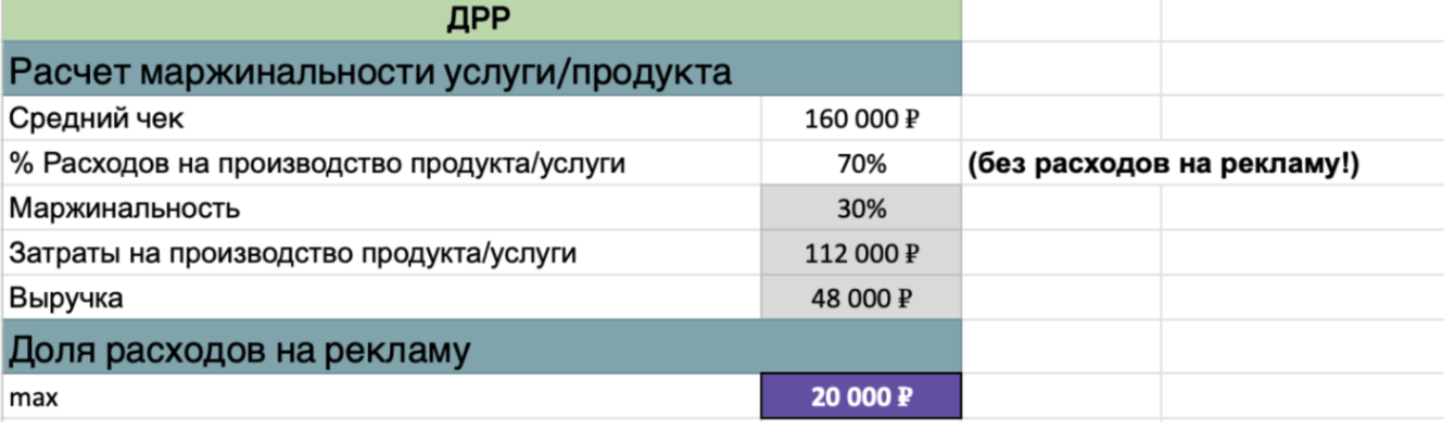 - Расчет доли рекламных расходов на 1 договор (сколько мы можем потратить денег, чтобы привлечь одного клиента)