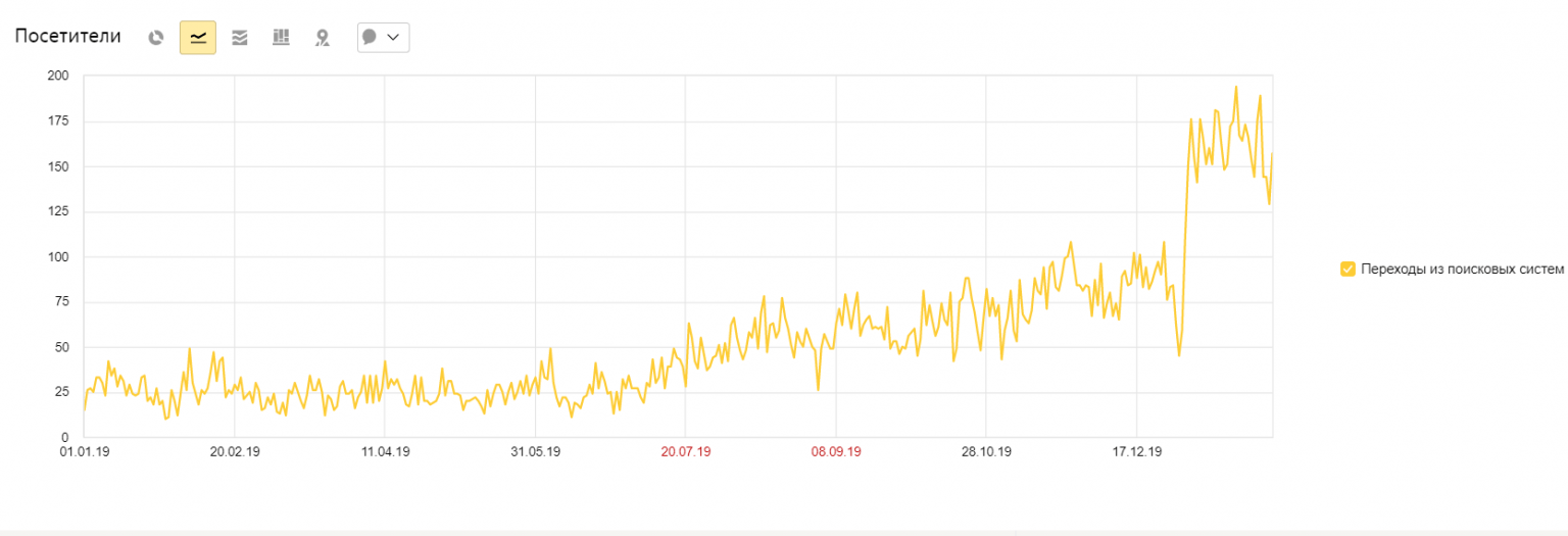Проанализировав, с каких статей идет больше всего трафика, мы переформатировали их в соответствии с новыми требованиями, а также обновили дату их публикации. Таким образом, получилось поднять позиции некоторых страниц и увеличить время пребывания на сайте.