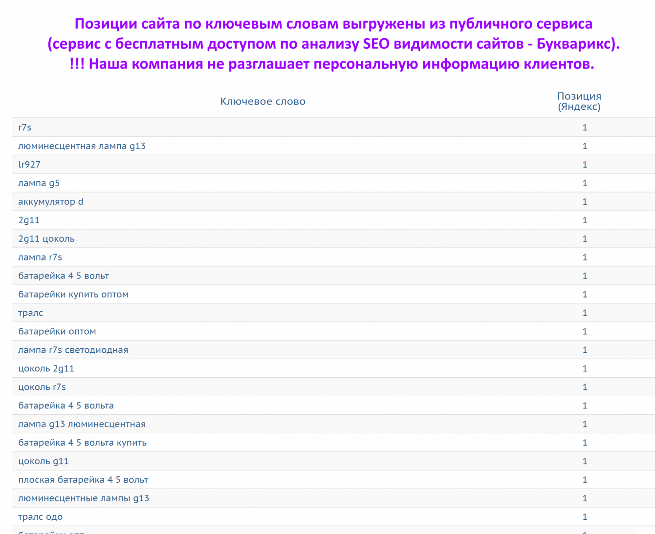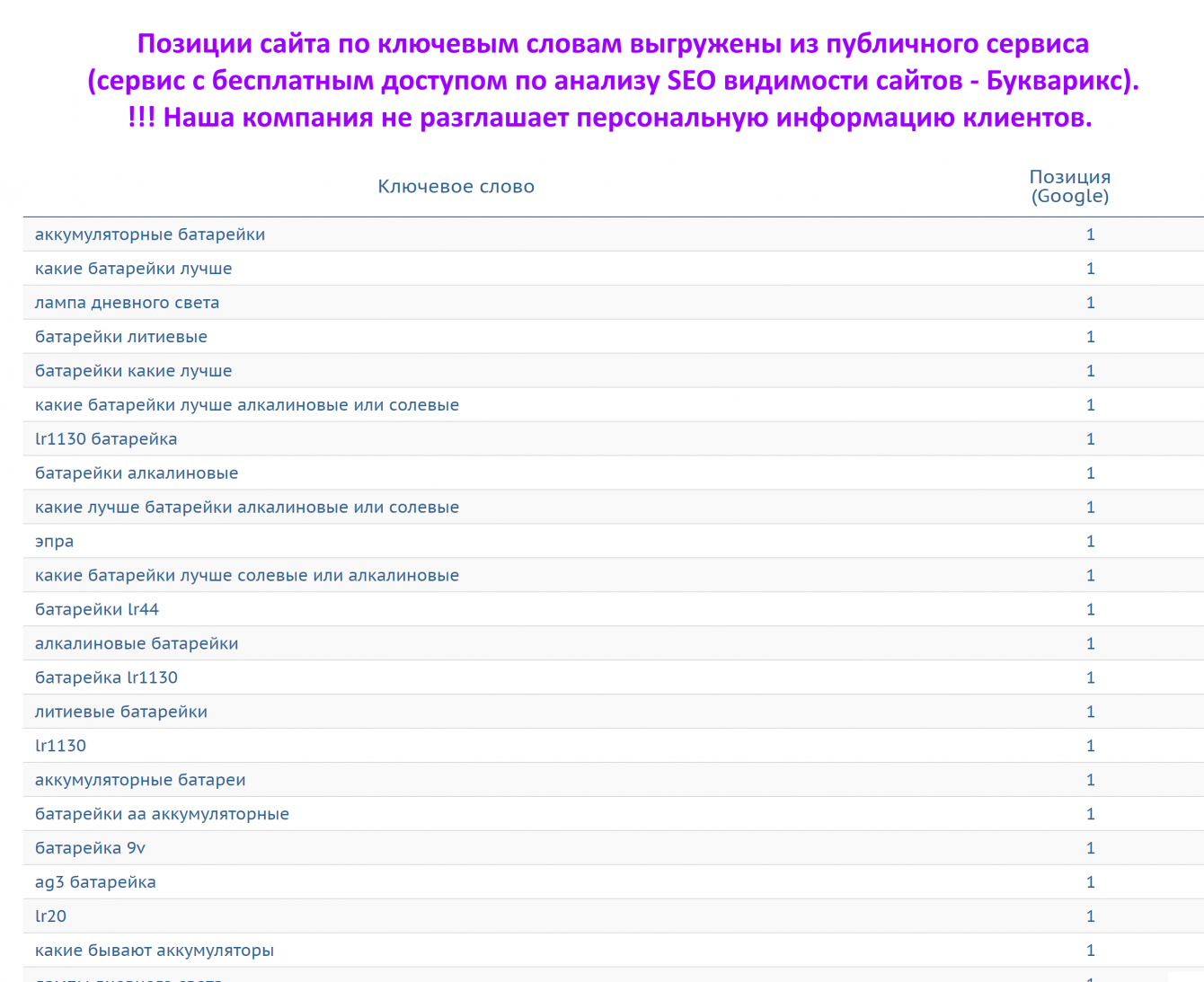 Работа с локальными запросами: проведена оптимизация сайта под локальные запросы (например, “купить батарейки в Минске”), добавлена информация о контактах, адресах магазинов, режимах работы.