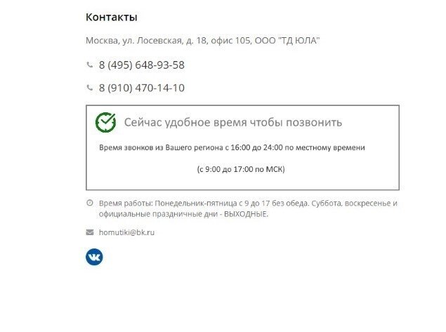 Данную задачу решили путем установки информера, который посетителям сайта из других часовых поясов показывает удобное время коммуникации по московскому времени. Информер проверяет настройки часового пояса пользователя, сравнивает с временем по МСК, и сообщает в какой интервал по местному времени будет удобно связаться по телефону.