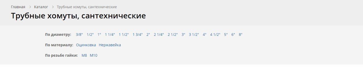 - позволяли пользователю быстро найти среди множества единообразных товарных позиций нужные. Т.е. попадая в раздел, например, с силовыми хомутами, человек мог сразу отсортировать по нужному ему критерию – количеству болтов, типу покрытия, размеру, бренду и т.д;