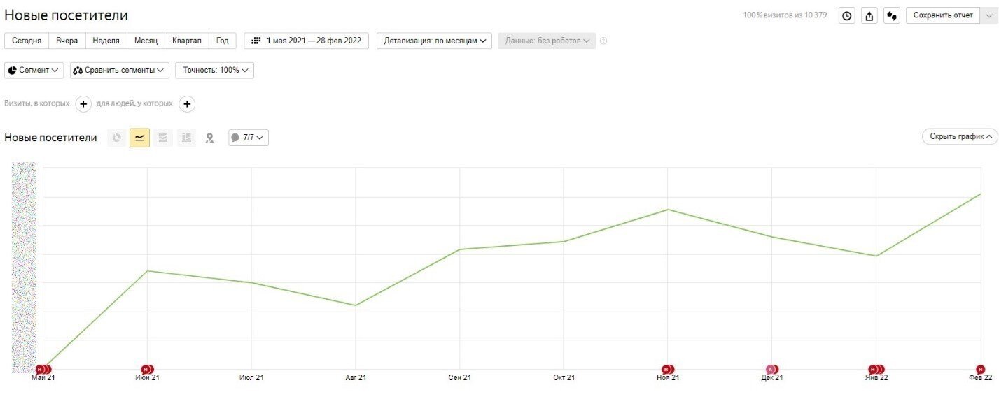 Результатом работы стало почти двухкратное увеличение органического поискового трафика с июня 2021 по февраль 2022г.