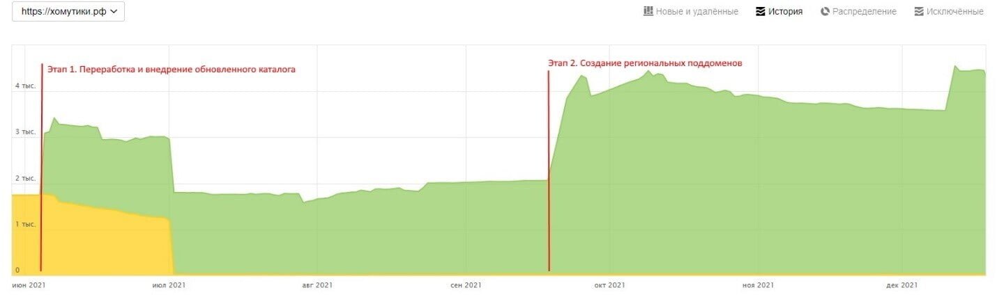 Таким образом, помимо разделов основного каталога было сформировано более 700 посадочных страниц для низкочастотных запросов.