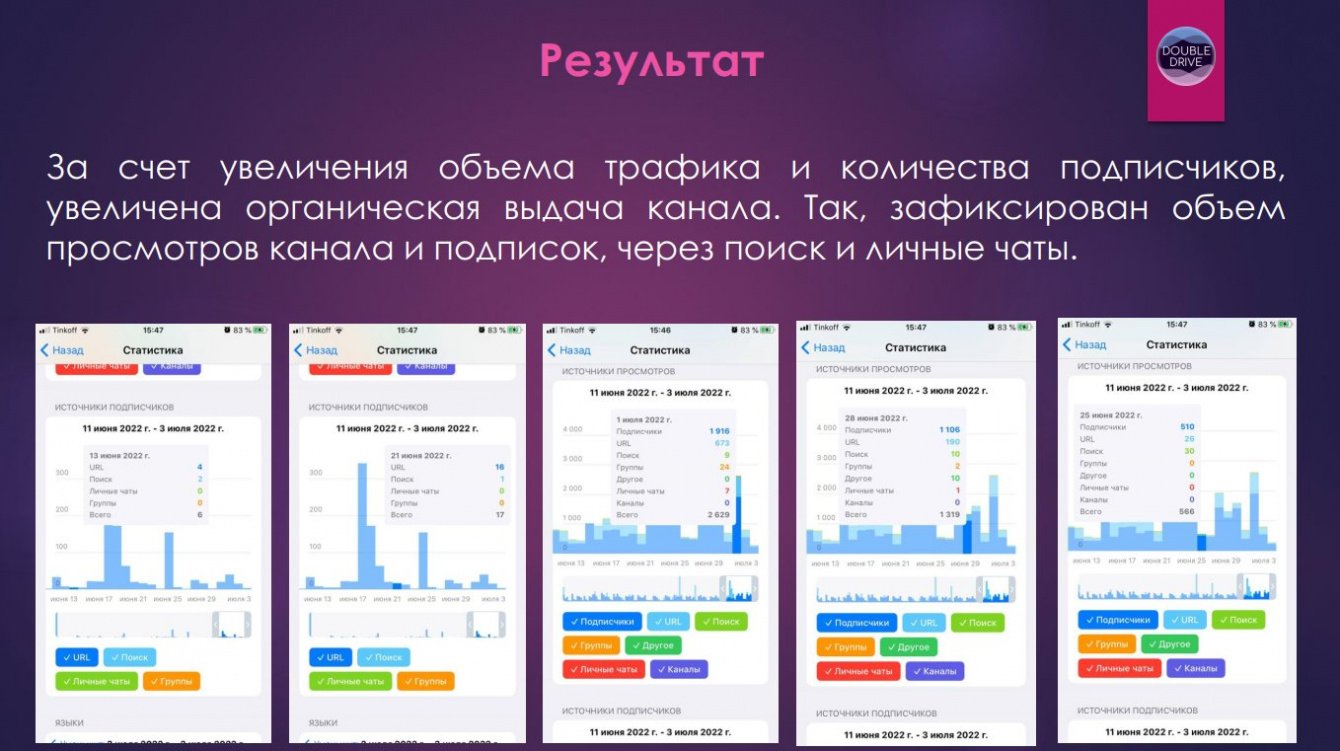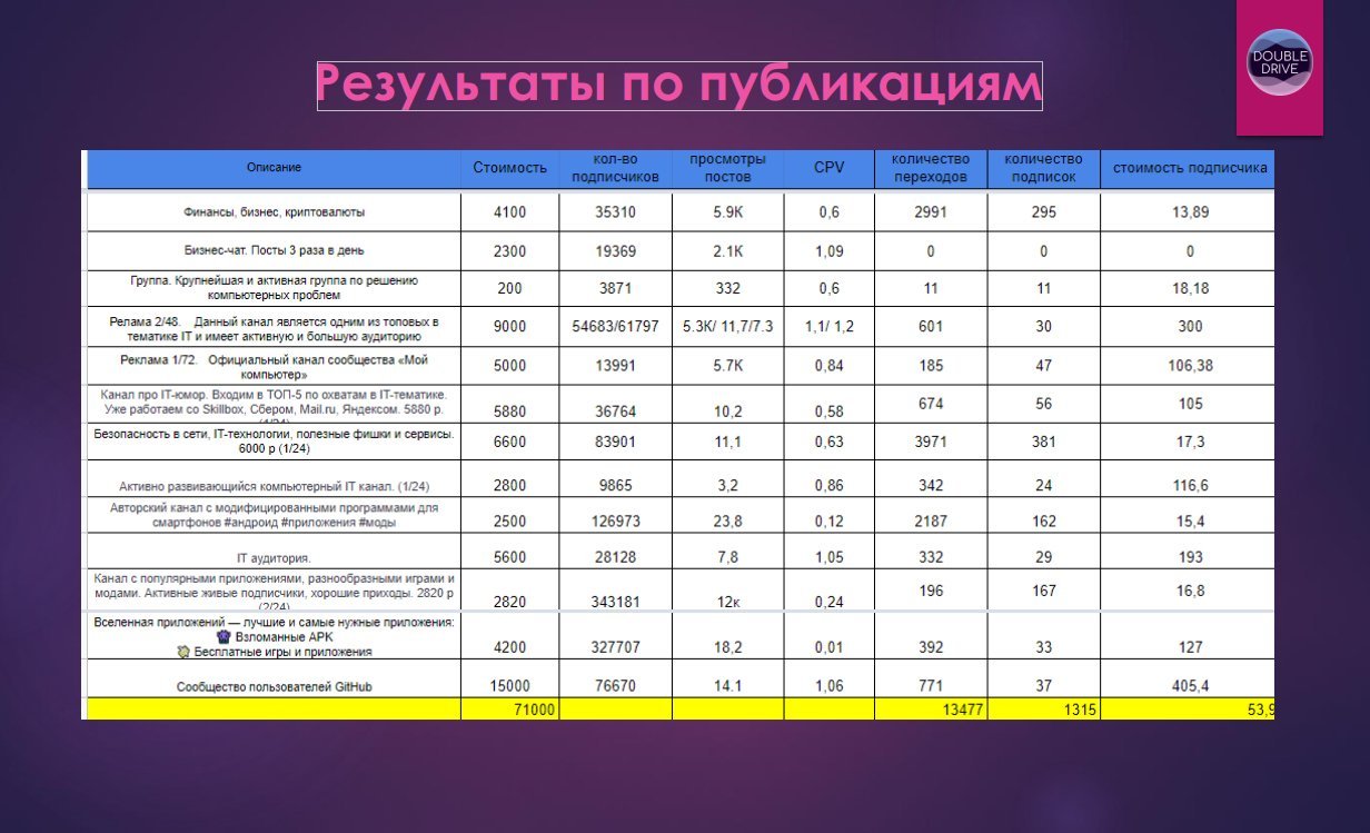 3. Подобраны каналы в соответствии с интересами ЦА, с разным объемами аудитории;