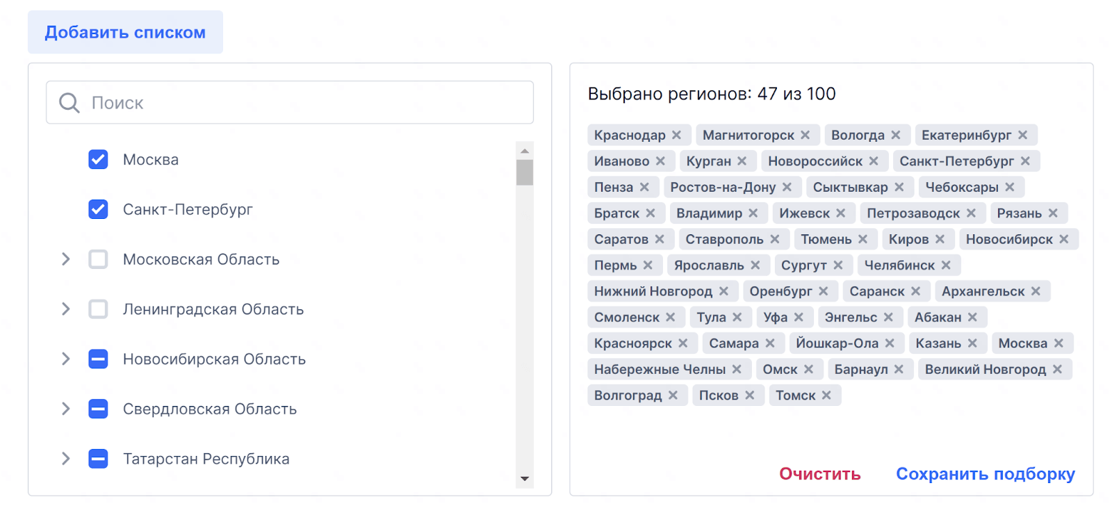 Далее приступили к настройкам таргетинга. Мы были ограничены по ГЕО. Видеобаннер показывался только тем, кто проживает в городах, где присутствуют дилеры клиента.