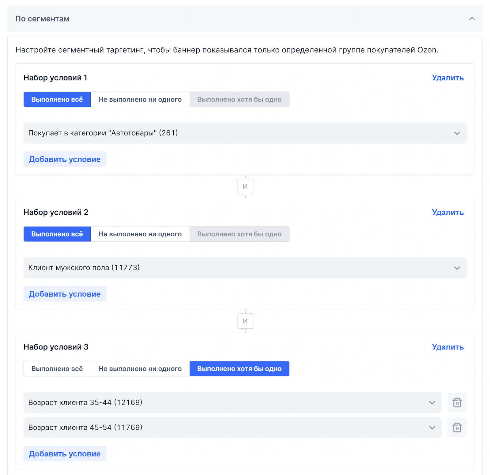 На основе портрета ЦА, проработали сегменты пользователей и сформировали сегментный таргетинг в рамках объявления.