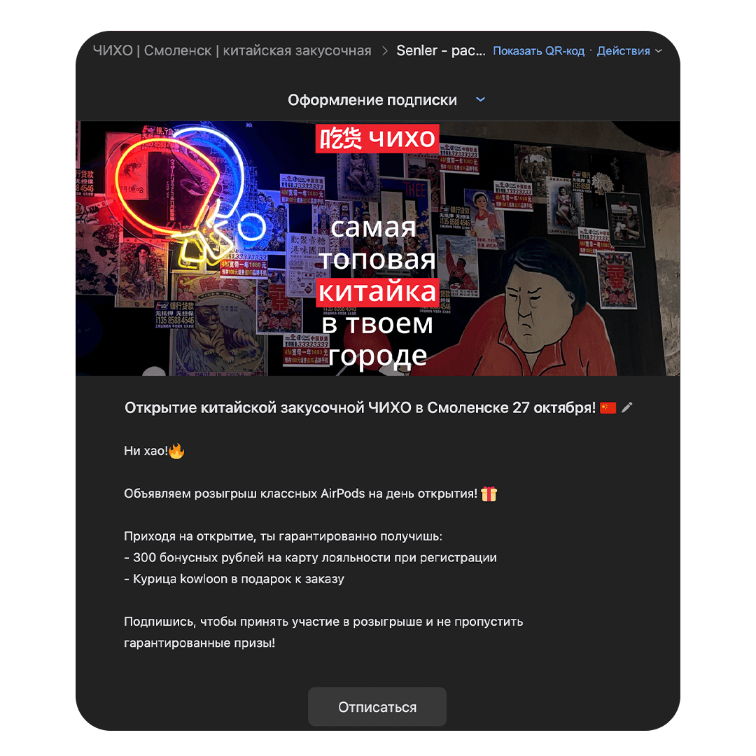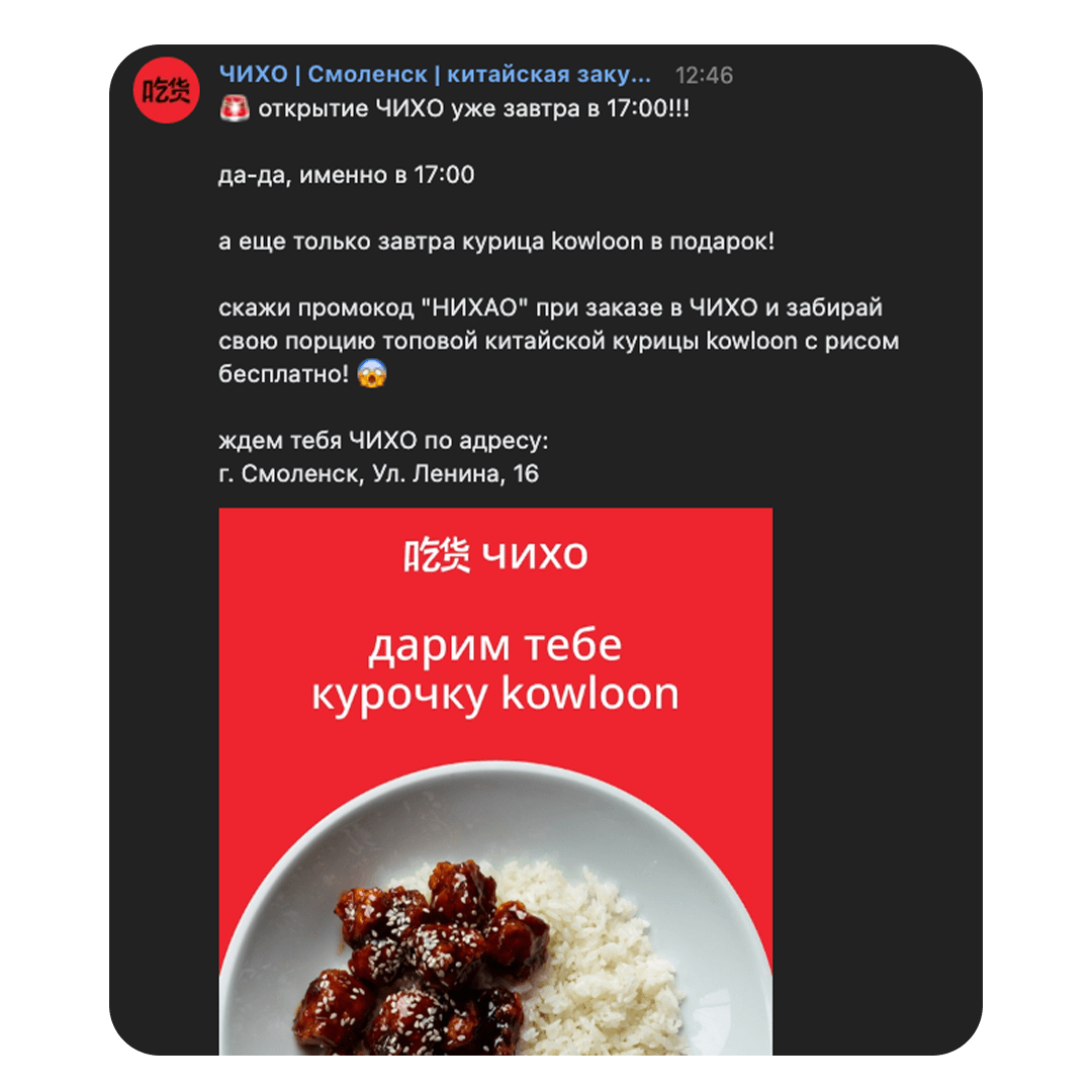 В октябре 2023 года к нам обратились представители одной из лучших сетевых заведений китайской еды ЧИХО с целью провести успешное открытие нового ресторана в Смоленске.