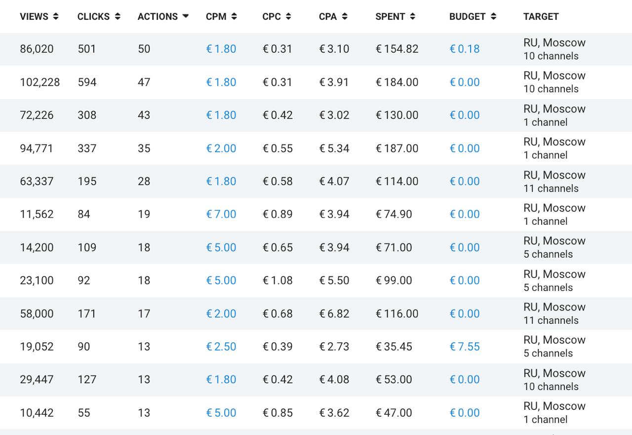 - CPS (стоимость подписчика): от 1,5 € до 4 € в зависимости от услуги