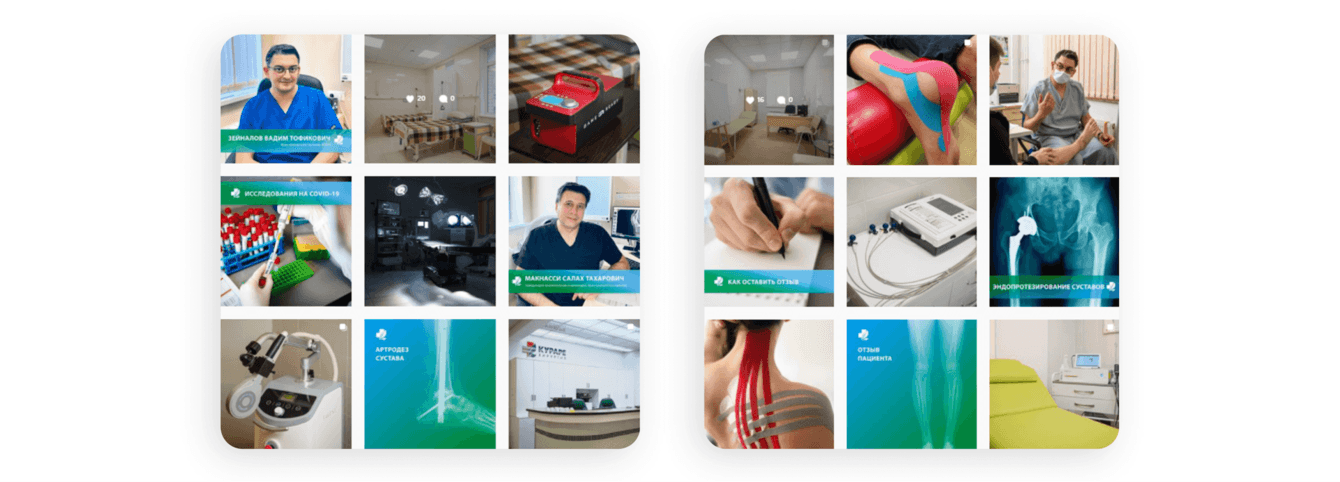 Создание уникального контента, который будет интересен целевой аудитории: фотографии клиники, видео обзоры процедур, истории пациентов, информационные посты о новых услугах и акциях.