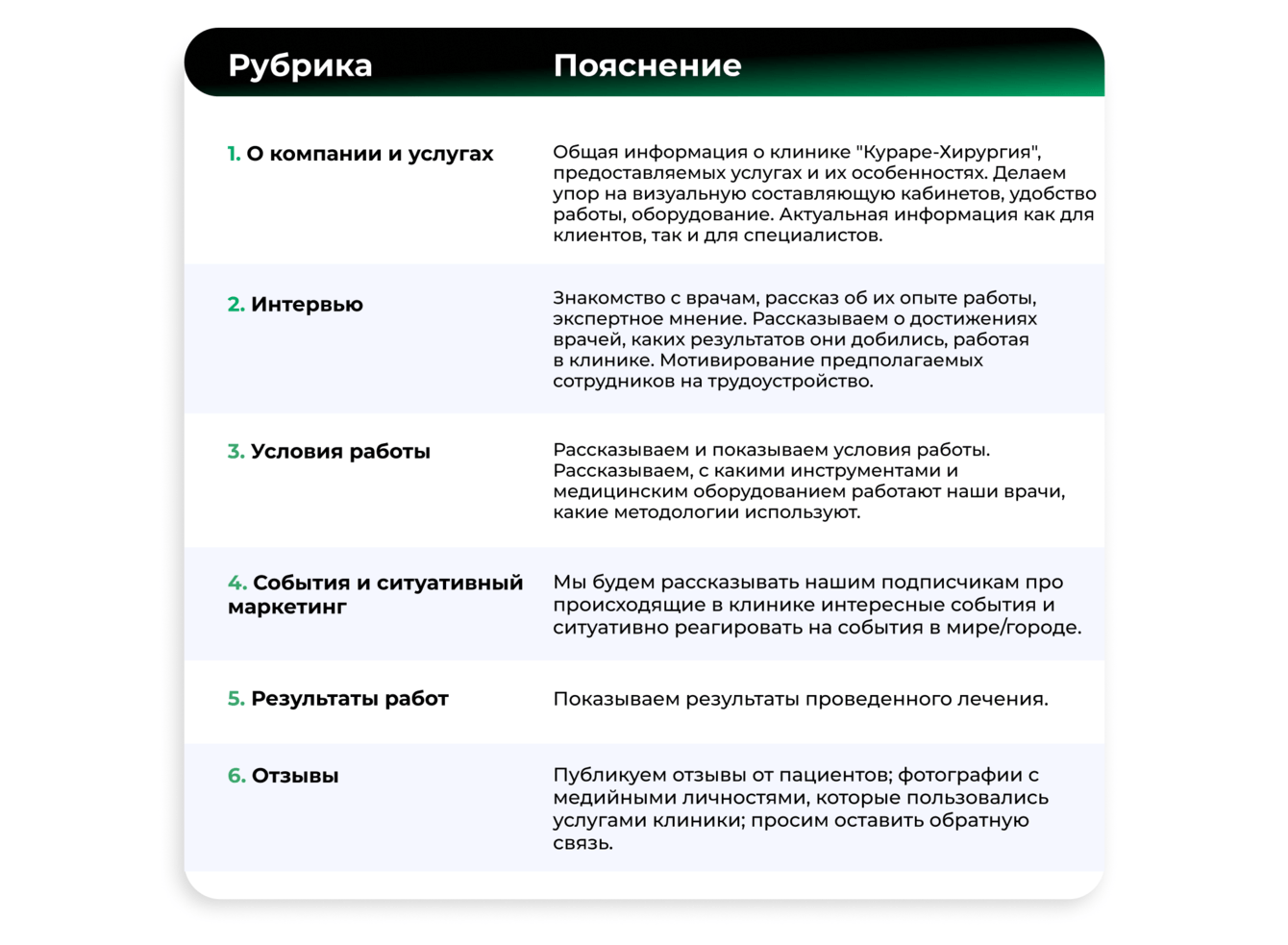 Tone of voice: Мы щедро показываем внутреннюю кухню, раскрываем всю выгоду от работы и лечения у нас (преимущественно рассказываем о самой клинике) и рассчитываем получать обратную связь от подписчиков.