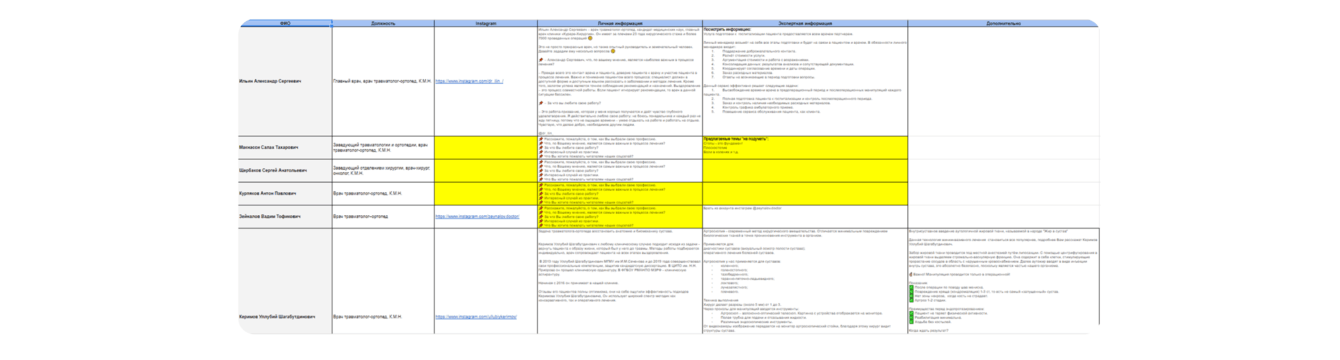 Мы изучили и структурировали всю информацию, полученную от врачей, в виде таблицы. Определили перечень вопросов, которые необходимо было задать специалистам.