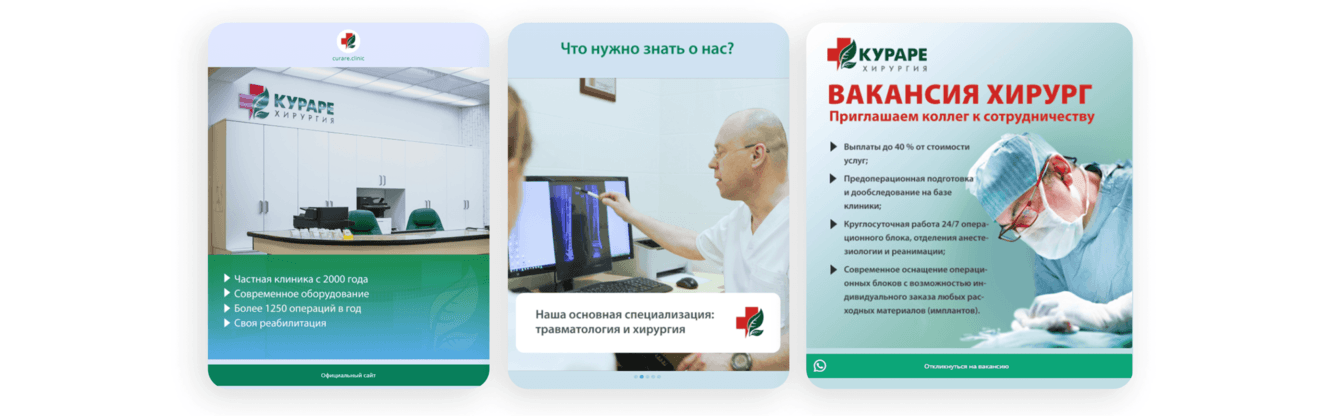 - Повысить осведомленность: сделать «Кураре-Хирургия» известной клиникой, закрепить образ современного и профессионального медицинского учреждения, специализирующегося на хирургических услугах.