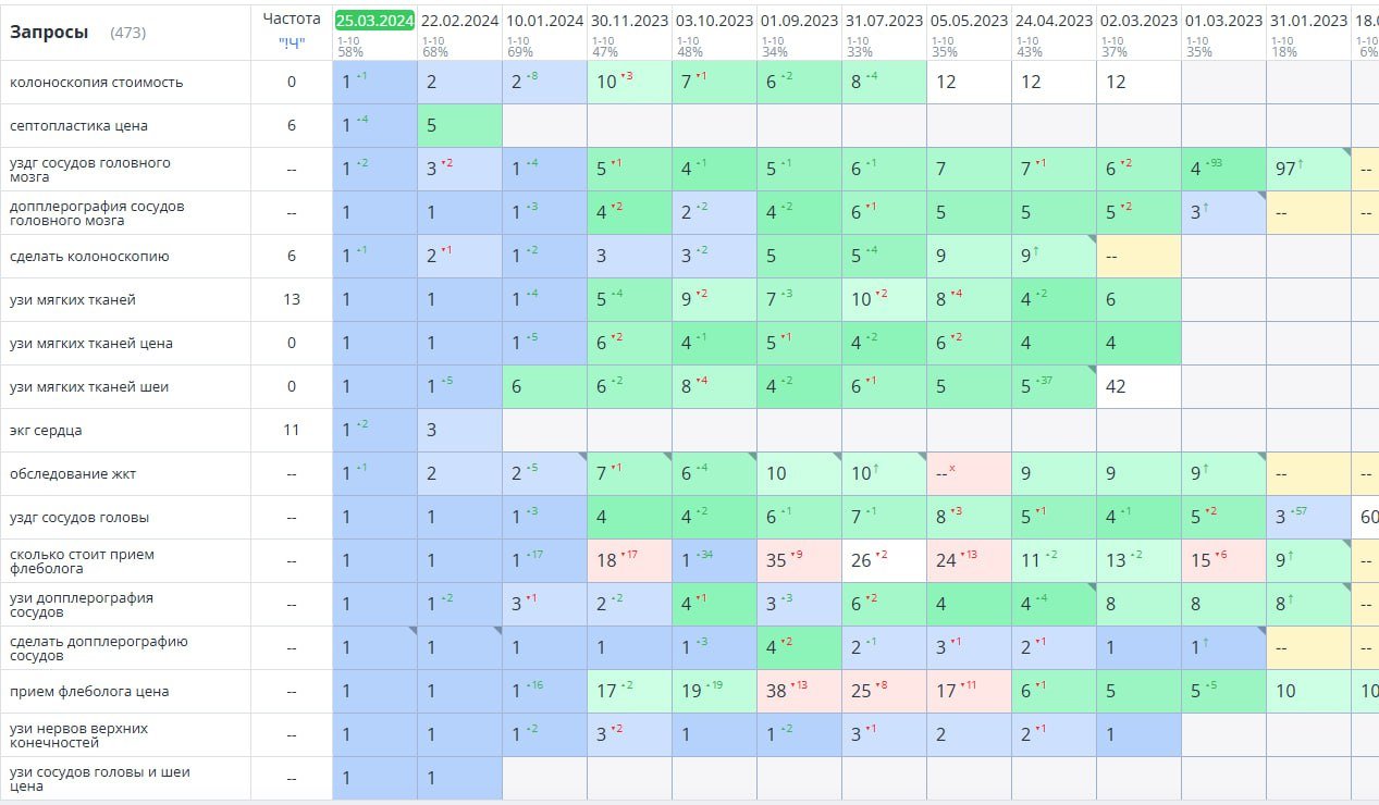 • Лиды по конкурентным направлениям (неврология, ФГДС) по стоимости ниже среднерыночной — благодаря точной настройке контекста и отбору высококонверсионных запросов.