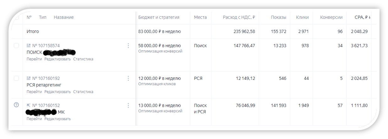 Первые 3 недели кампании собирали статистику, исходя из которой мы чуть позже вносили корректировки