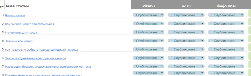 - Разработка блога с публикацией статей на темы, связанные с навесами и воротами.