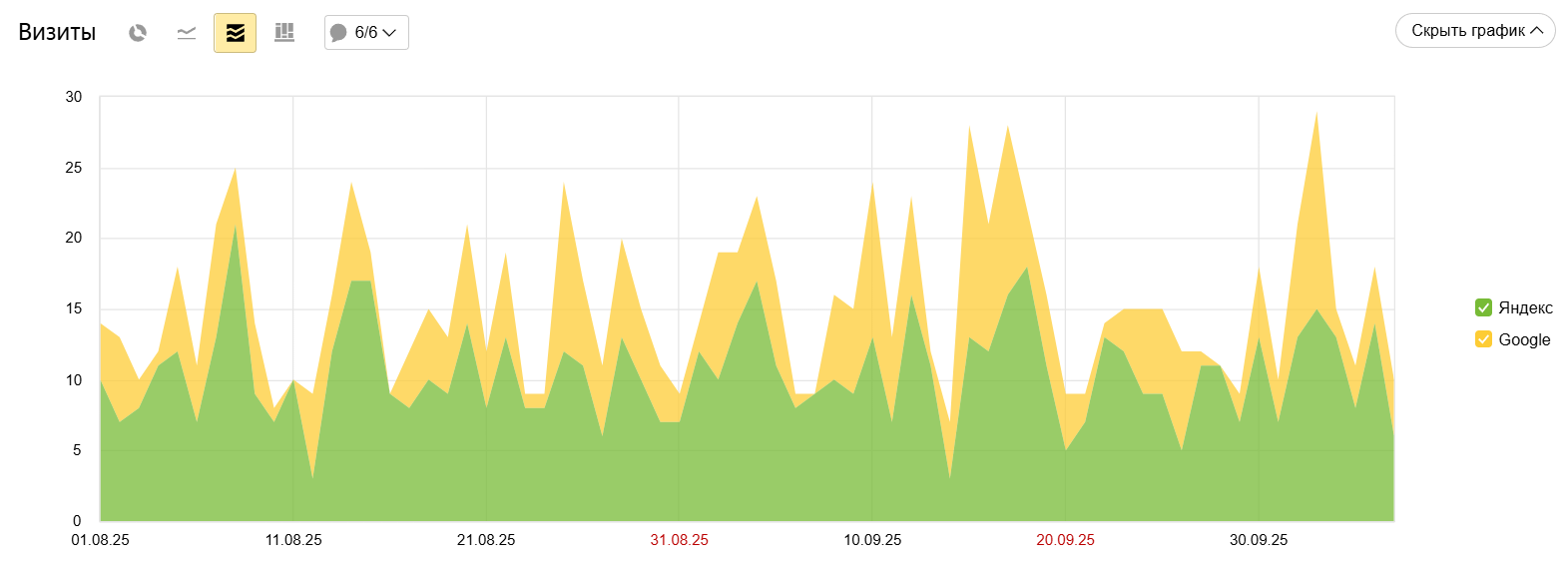 - Увеличилась общая видимость сайта в поисковых системах, что привело к росту трафика и заявок на услуги.