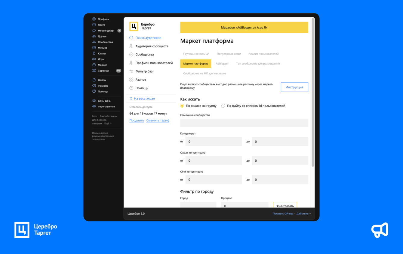 4. Есть возможность оптимизировать затраты — благодаря работе Ц и инструментарию самих площадок Маркет-платформа и Adblogger.