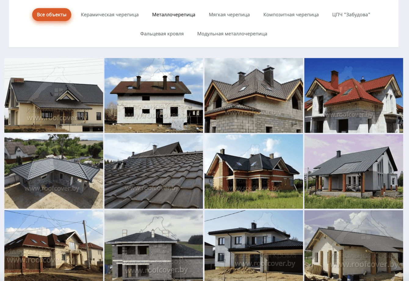 Примеры оформления портфолио на нашем сайте можно посмотреть тут — https://roofcover.by/portfolio