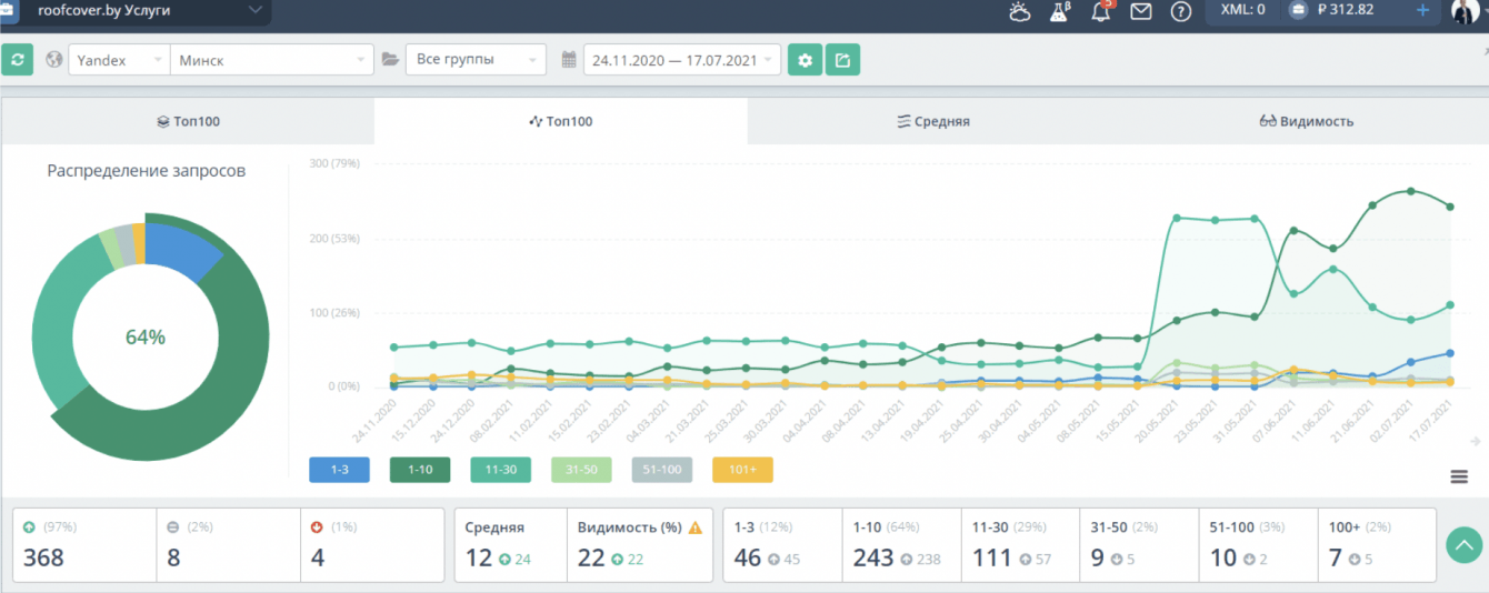 - ТОП-10 Google — 263 запроса (+251 запрос)