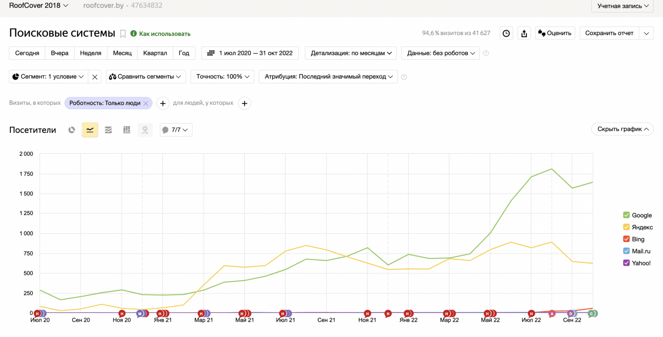 В 1-й части кейса я рассказал о методах и результатах, которые помогли сайту войти в ТОП-10. Но именно в течение второго года нам удалось сделать сайт компании лидером ниши по кровельным работам, стабильно получающим большое количество заявок.