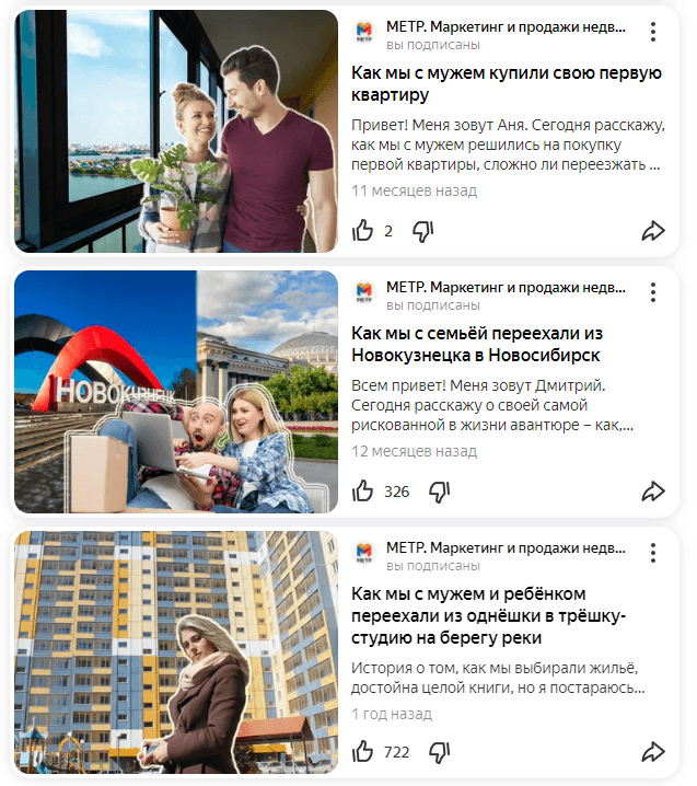 Далее добавили ещё несколько публикаций в формате user-case о переезде из соседних городов в Новосибирск.