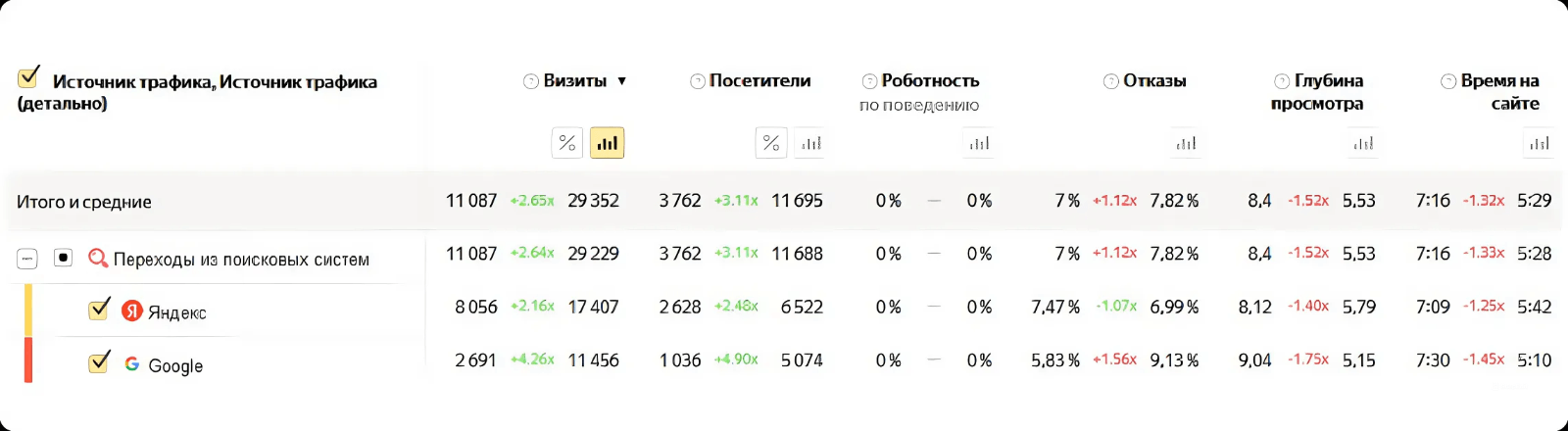 Увеличить ежемесячное количество визитов на сайт из поисковых систем с 11 087 до 29 229 — рост в 2,6 раза.
