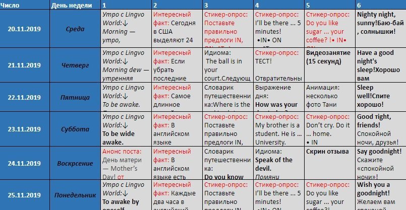 2. Разработали контент-планы на каждый месяц в каждой соцсети свои.