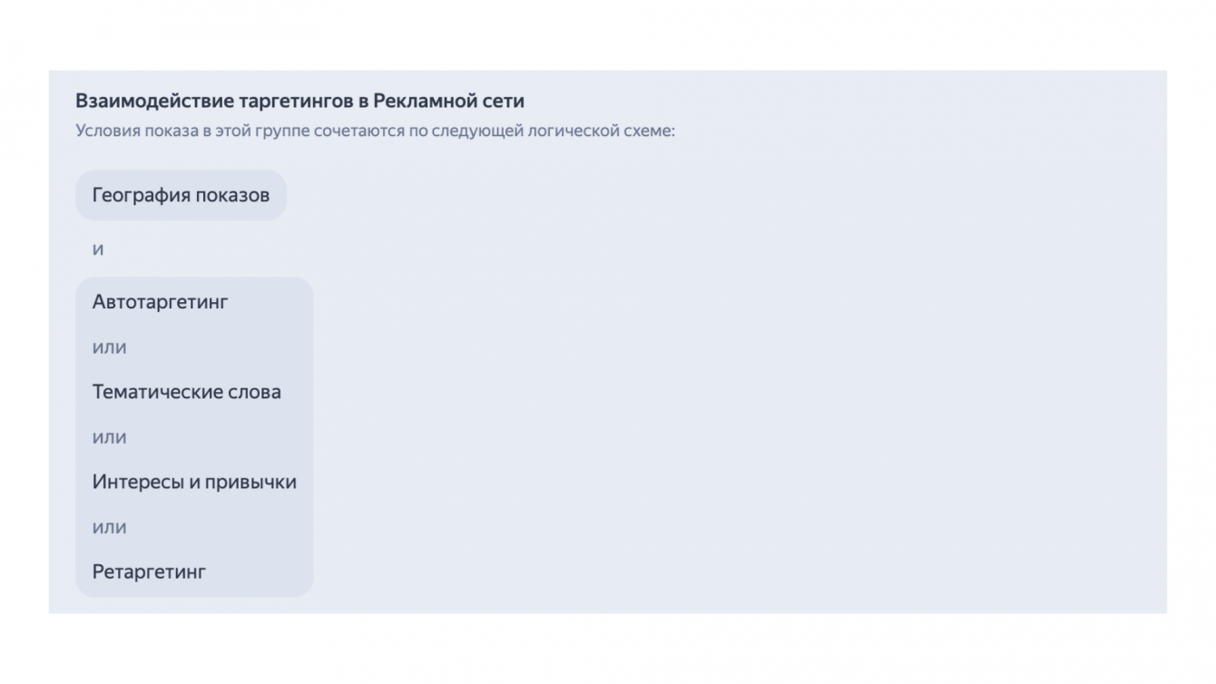 На третий месяц продолжаем тестировать аудитории и их комбинации. Например, в Яндекс можно собрать кампанию по комбинации интересы+ключи+сегмент аудитории. Она собирается по логичной схеме, которую сам Яндекс вам предлагает.