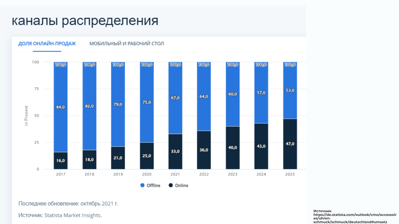 Тренды объема онлайн продаж ювелирных украшений. Германия
