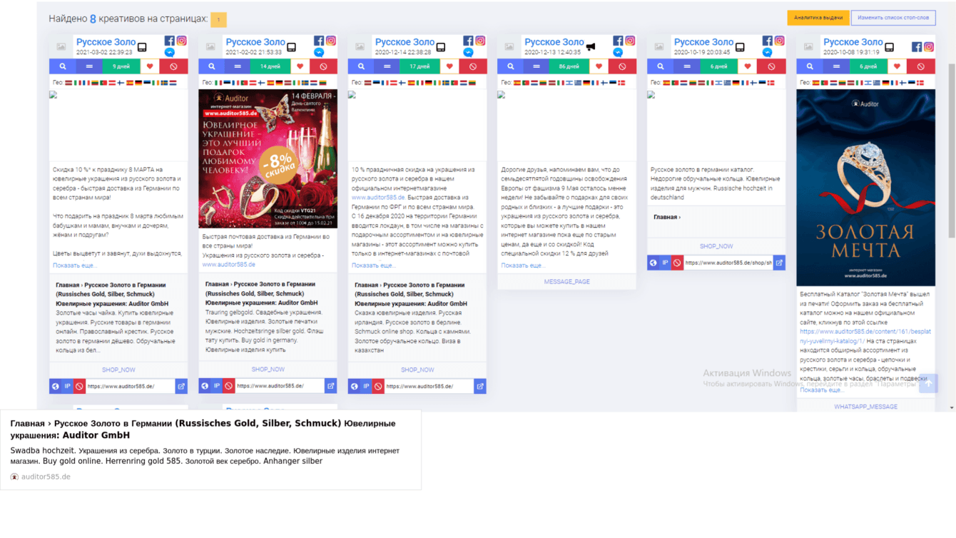 Аналитика конкурентов в инстаграм и фейсбук. Немецкий язык