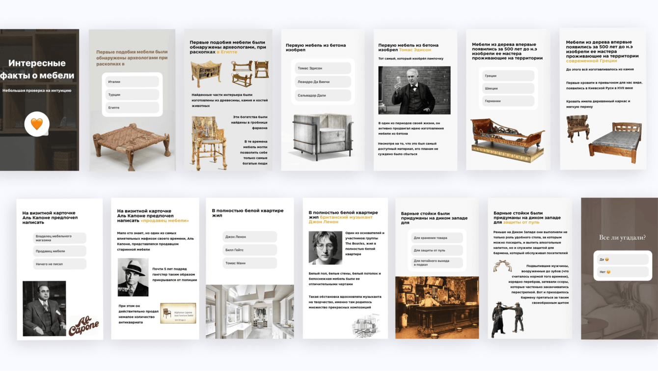 Создание уникального контента, который будет интересен целевой аудитории: фотографии мебели, видео обзоры, истории клиентов, информационные посты о новинках и акциях.