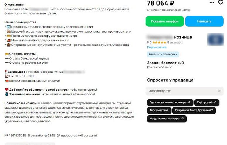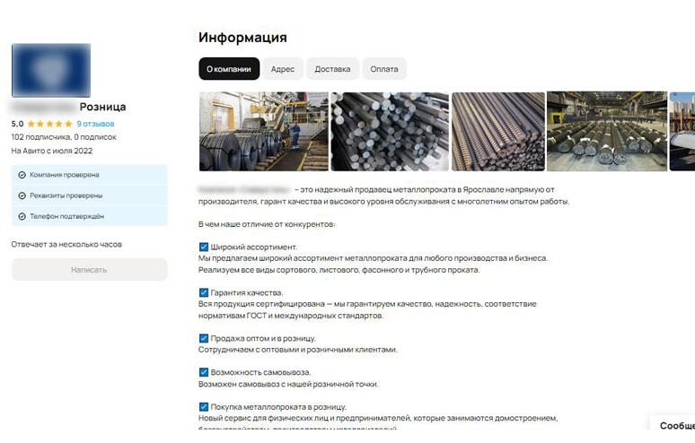 1. Пустой профиль. Отсутствовала информация о компании (в том числе об условиях оплаты и доставки), не было отзывов, фотографий производства и складов.
