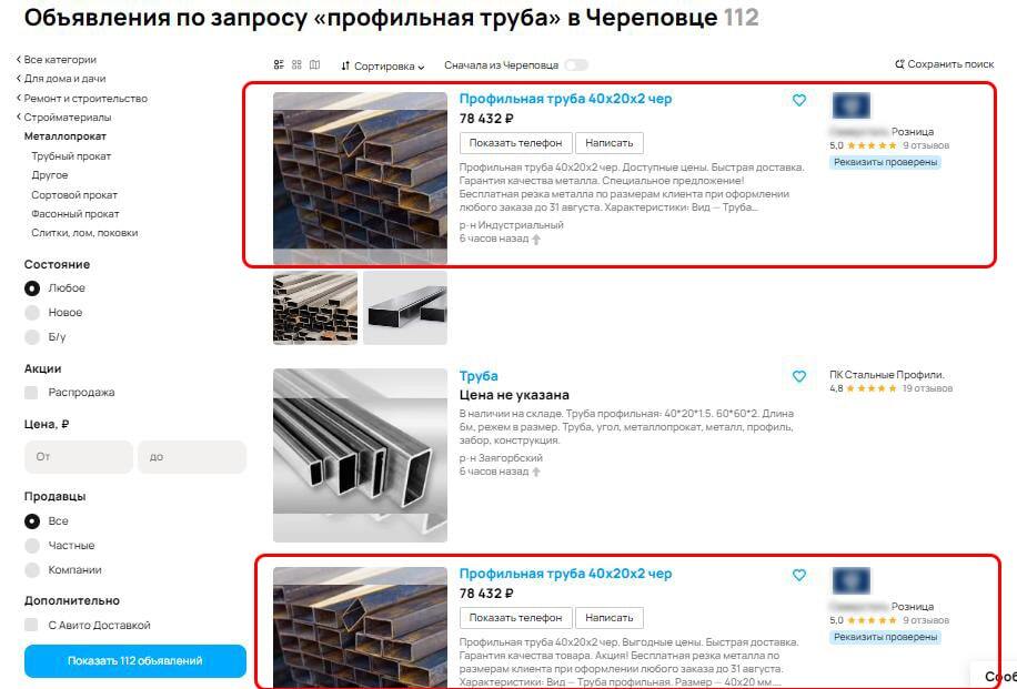 3. Оптимизировали объявления. Пришлось полностью менять заголовки и описания. При этом акцент делали на геозависимые ключевые запросы и УТП (например, «резка от 1 метра» и «доставка в день заказа»).