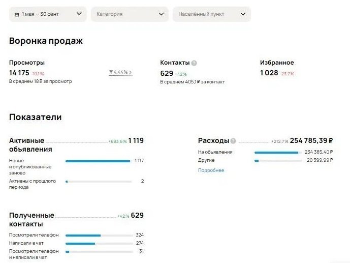 Проект показал, что даже в сложной b2b-нише с сезонным спросом системная работа над аккаунтом Авито может принести значительные результаты. За 5 месяцев нам удалось: