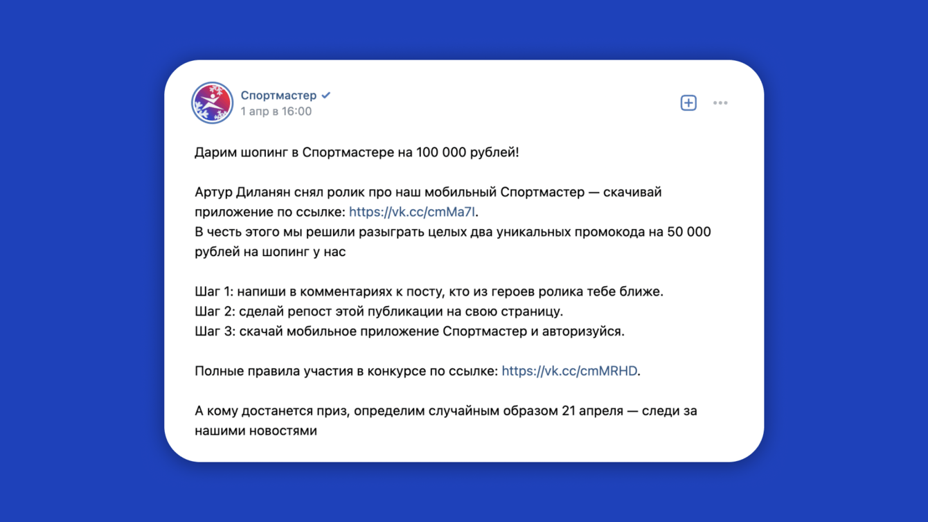 - Продвижение мобильного приложения «Спортмастер».