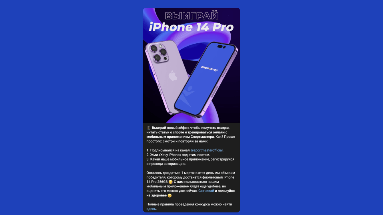 - провели крупную конкурсную активацию в Telegram с розыгрышем айфона;