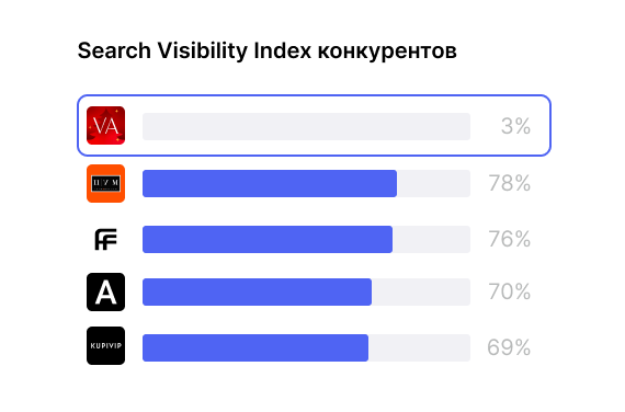 2. Видимость по сравнению с конкурентами по данным сервиса CheckAso. На начальном этапе видимость минимальная — 3%.