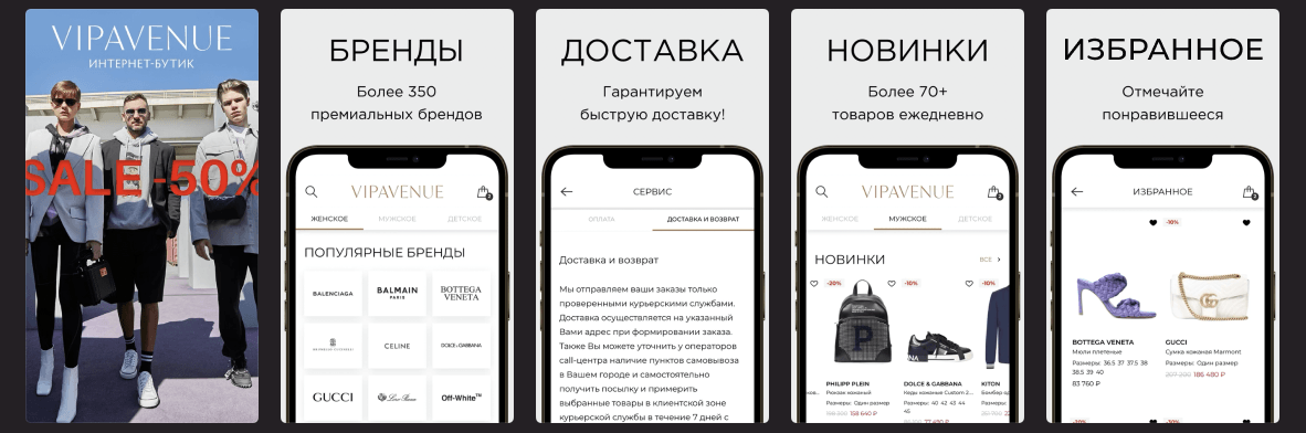 В App Store первые два скриншота показываются в поиске и на странице приложения. В качестве первых двух использовали наиболее важные скриншоты: с SALE и наличием товаров более 350 брендов.